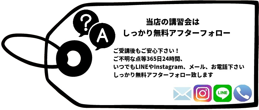 | 営業時間 | 午前10時~午後6時(お時間は応相談) ・現在、講習会は午後1時が最終スタートです ・出張講習会は午前中スタートのみです |